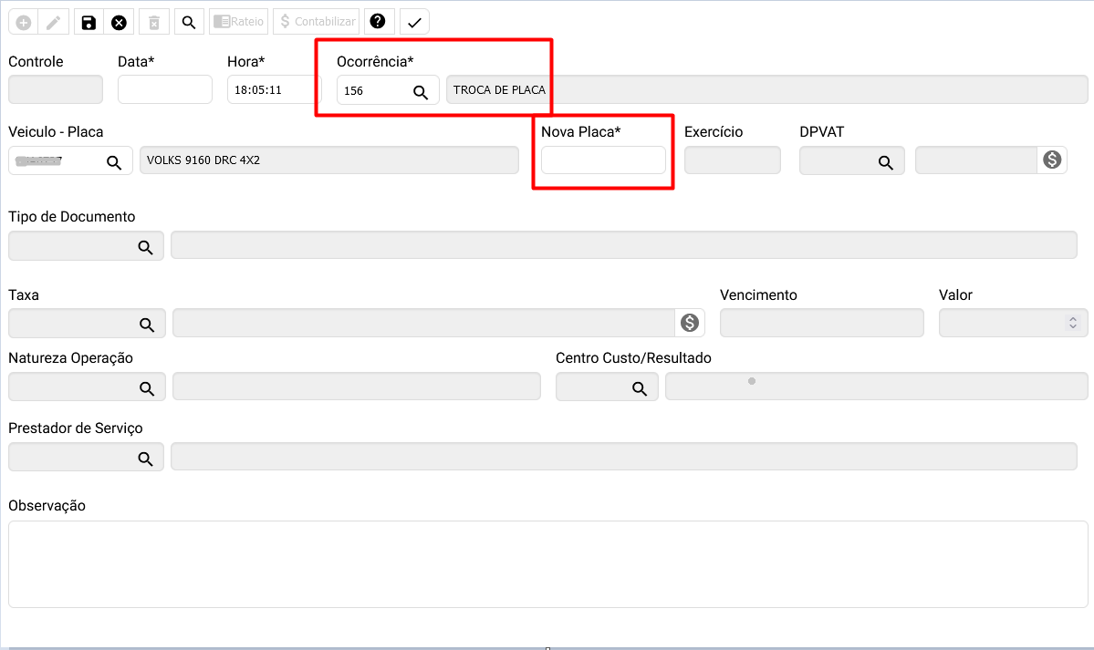 Para realizar a alteração do medidor acesse o módulo abaixo:Gestão de Frota >> Manutenção >> Apontamento de Manutenção Informe a Ocorrência