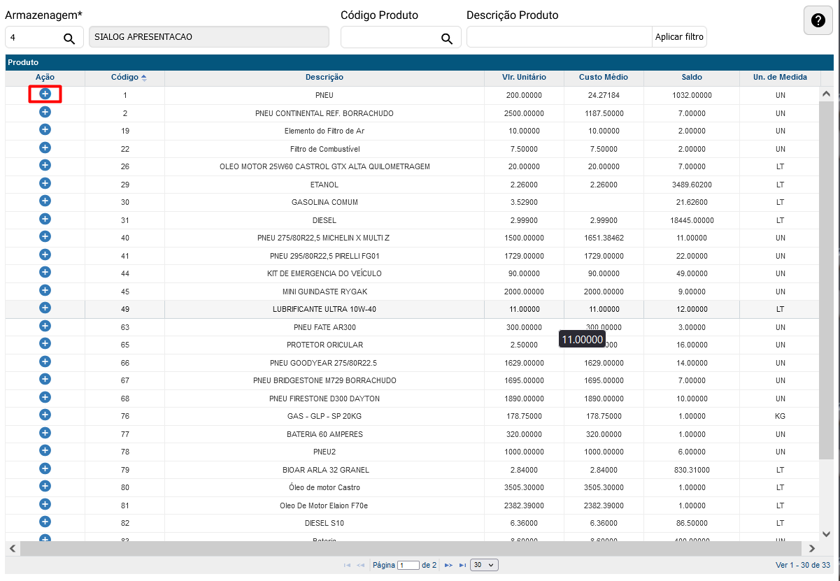 Consultar Almoxarifado Acesse o menu: GESTÃO DE FROTAS >> ALMOXARIFADO