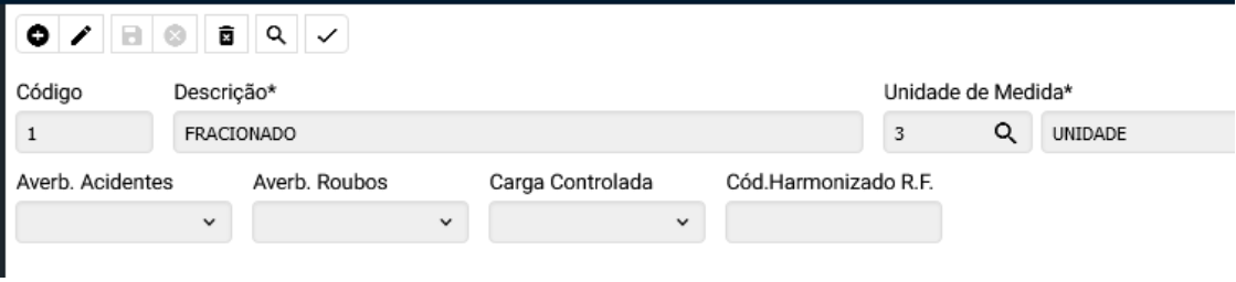 Clique no menu: CADASTROS >> MOVIMENTAÇÃO >> TIPO DE CARREGAMENTOClique em novo e informe a Descrição e a Unidade de