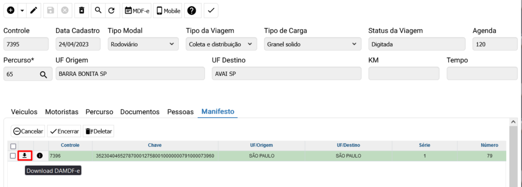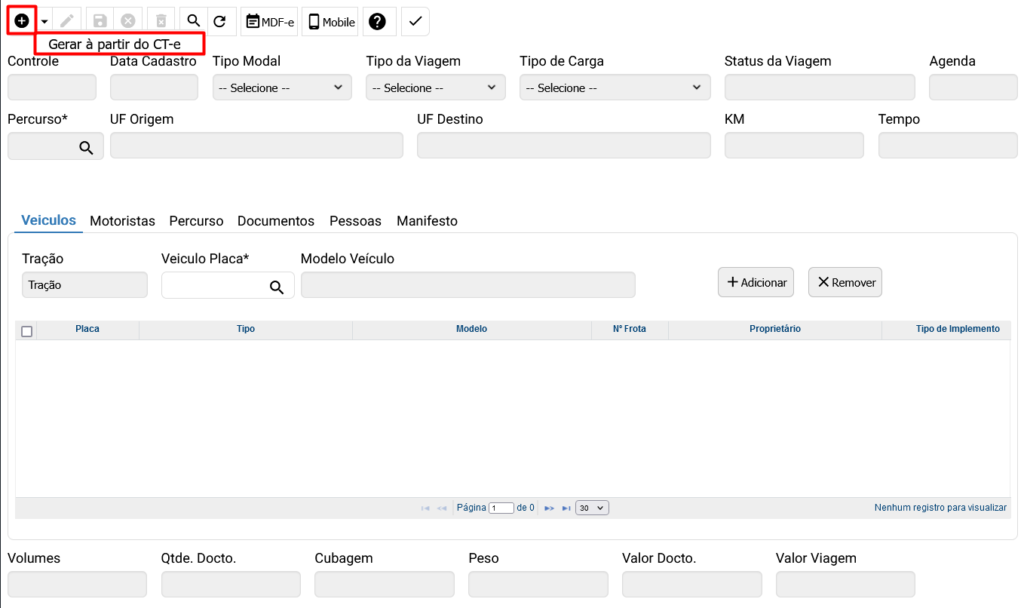 A viagem pode ser cadastrada manualmente ou gerada automaticamente à partir de um CT-e emitido/autorizado.