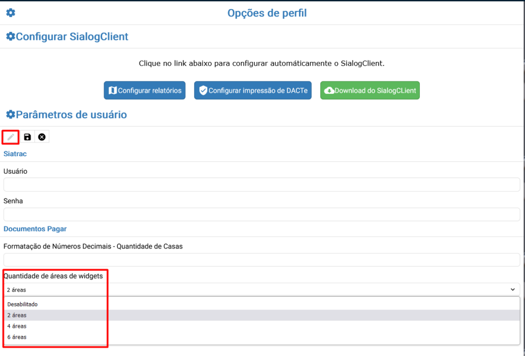para habilitar os locais que serão adicionados os widgets, depois selecione a área clicando no ícone