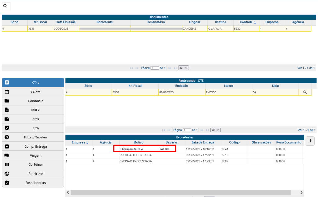 , pesquise pela ocorrência 9898 – Liberação de NF-e.