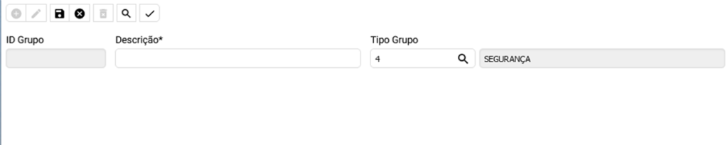 Preencha a descrição como achar melhor para identificação e o TIPO GRUPO = 4 – SEGURANÇA