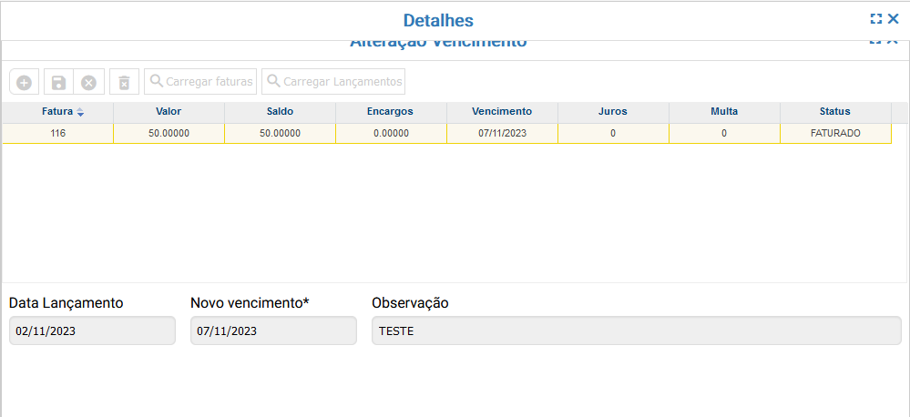 Também é possível realizar o cancelamento da fatura clicando no botão do lixinho ![]()