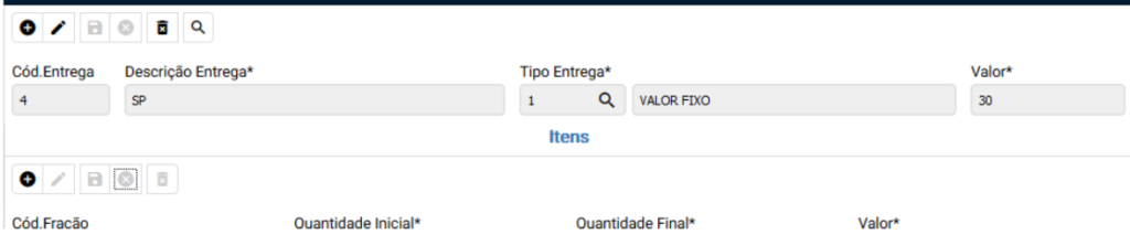 A TABELA DE ENTREGA é cadastrada para que o valor seja inserido na tabela de frete e assim compor o valor final do Frete do CTe.