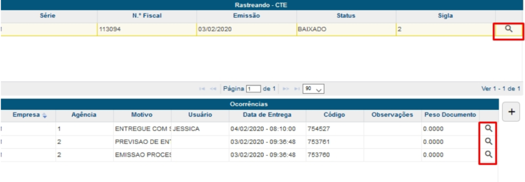 Para iniciar a rastreabilidade de algum documento primeiro devemos pesquisá-lo clicando na lupa