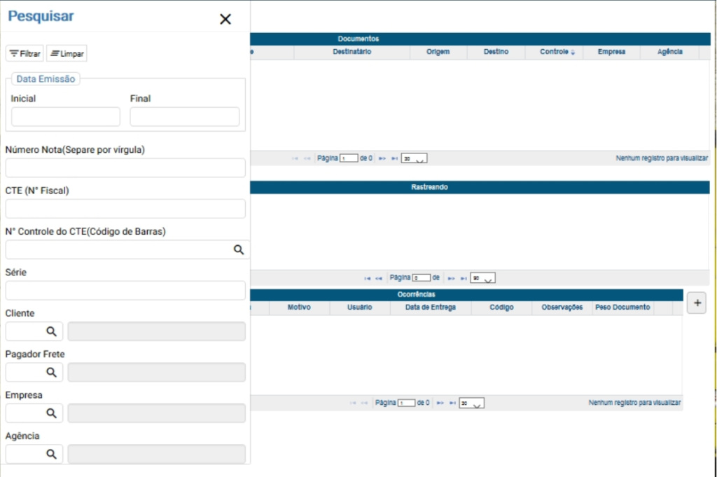 A tela de Rastreabilidade tem como objetivo identificar todos os momentos em que a mercadoria foi lançada, desde a coleta, emissão do CT-e, emissão do MDF-e, ocorrências e informações sobre as faturas.
