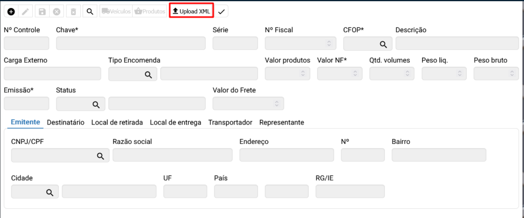 Clique no botão UPLOAD XML ![]()