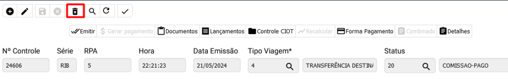 Após lançar a baixa no pagamento, o status do RPA será alterado para COMISSAO-PAGO