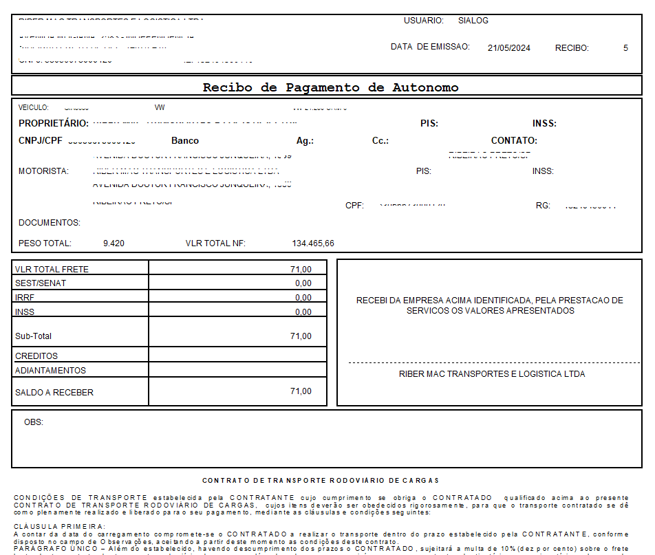 Essa é a tela de Emissão de RPA, que funciona como comprovante de quitação do valor acertado para a