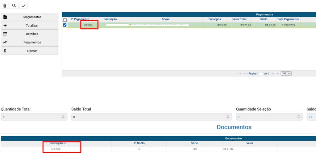 Depois de cadastrado a abertura, vamos lançar um documento no RPA, clicando em DOCUMENTOS ![]()