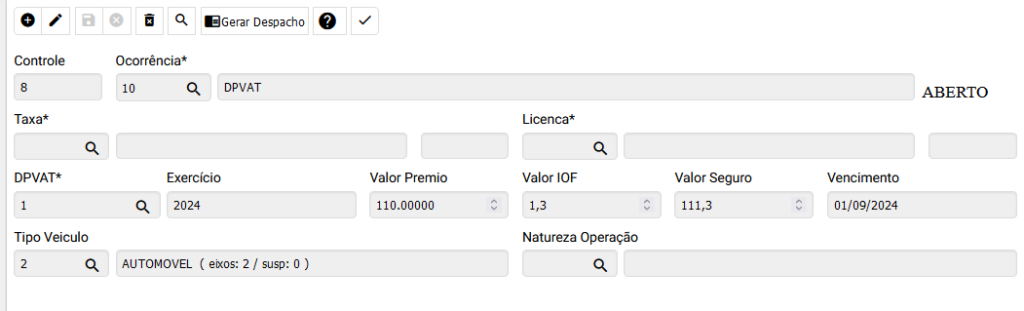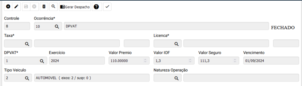 No sistema já vem pré parametrizado DPVAT e Licenciamento, porém as taxas podem ser alteradas conforme a necessidade em: