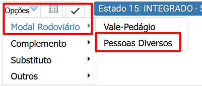 Depois clique em Opções >> Modal Rodoviário >> Pessoas Diversos.