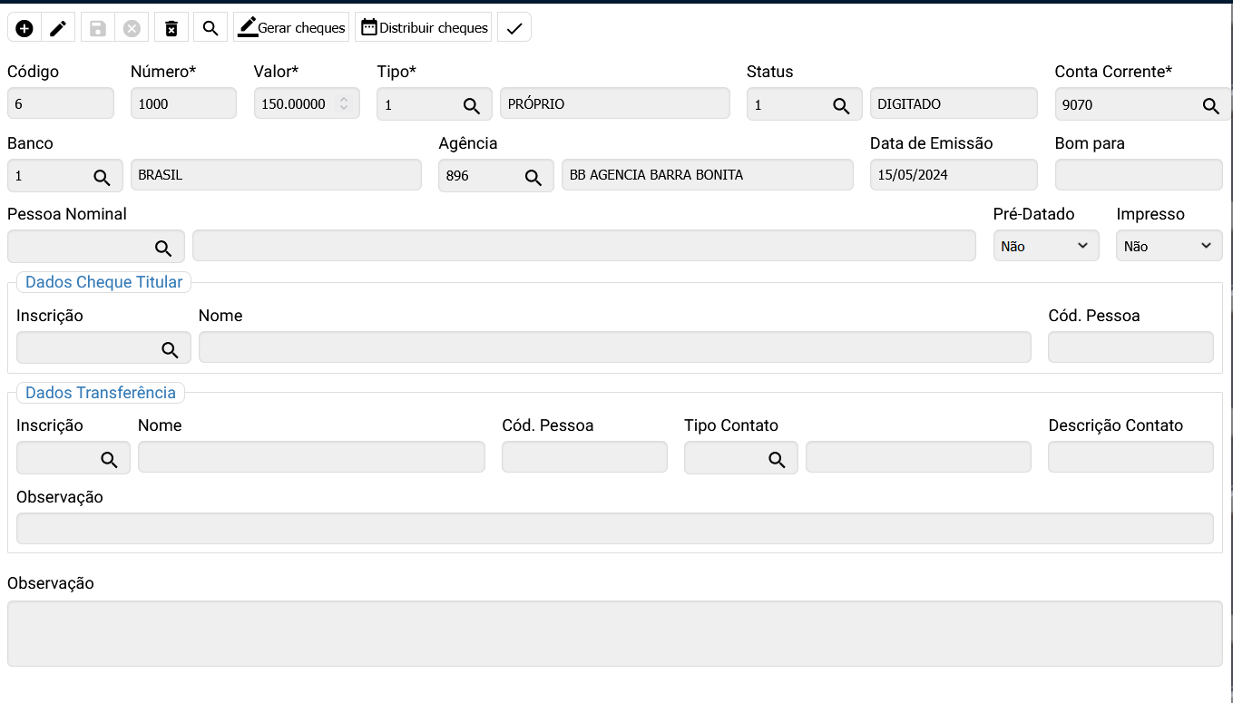 Gestão de Finanças Cadastro de Cheques ACESSE GESTÃO DE FINCANÇAS >> CONTROLE BANCÁRIO >> CADASTRO DE Leia mais »