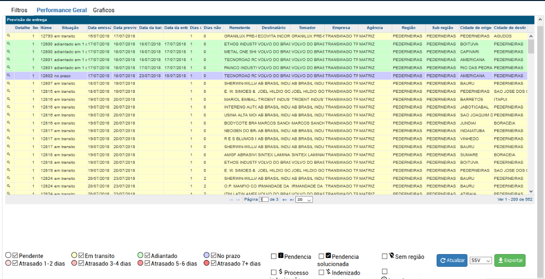S.A.C >> PERFORMANCE DE ENTREGAS A tela de Performance de