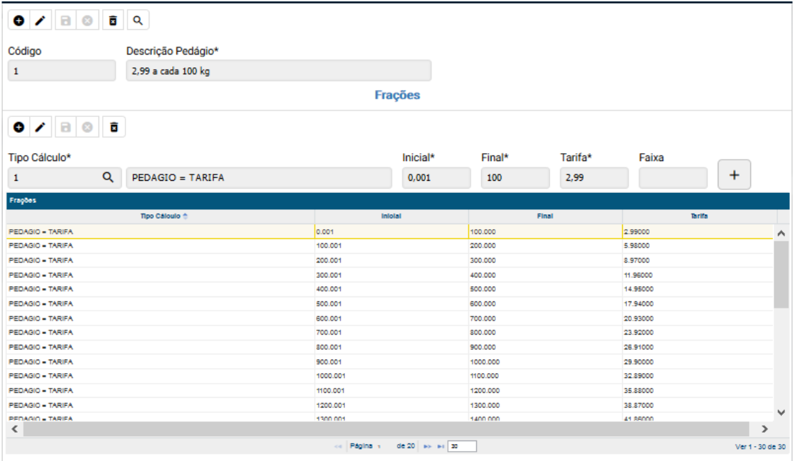 Tabelas de Frete Tabela de Pedágio Tabela para cálculo de pedágio Clique no menu: CADASTROS >> Leia mais »